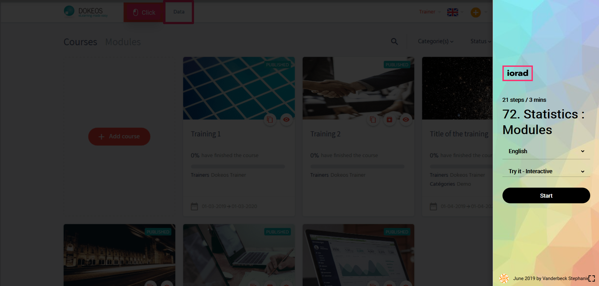 In the tutorial below you will learn to access the statistics of your modules with Dokeos LMS (creator of e-learning solutions that supports companies, training providers and multinationals in their online training projects)