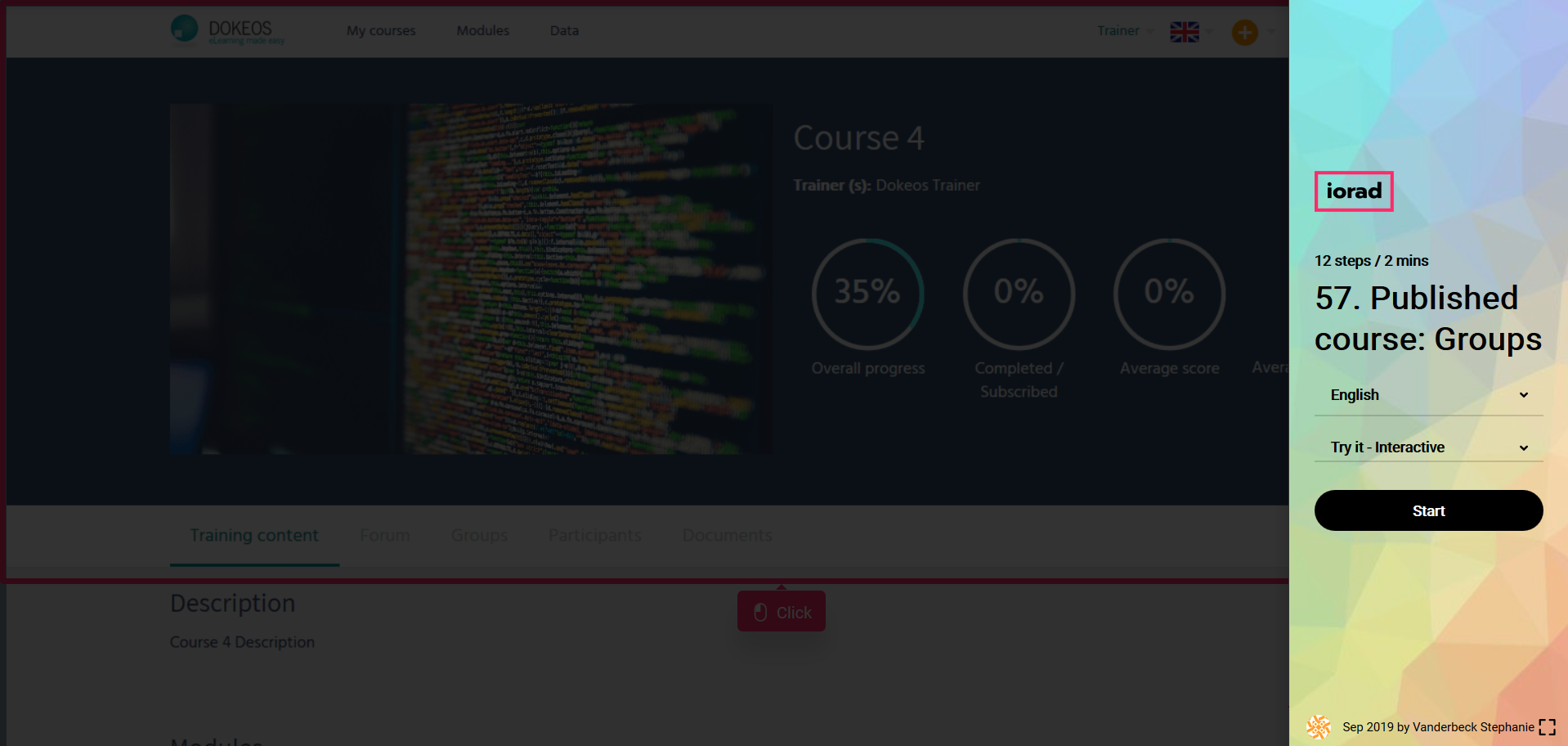 In the tutorial below you will discover what is behind the tab “Groups” of a published course with Dokeos LMS (creator of e-learning solutions that supports companies, training providers and multinationals in their online training projects)