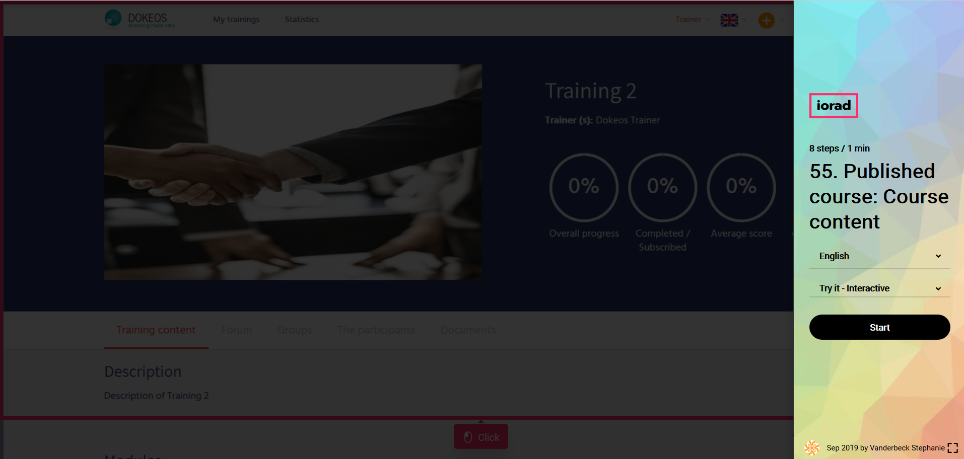 In the tutorial below you will discover what is behind the tab “Training content” of a published course with Dokeos LMS (creator of e-learning solutions that supports companies, training providers and multinationals in their online training projects)