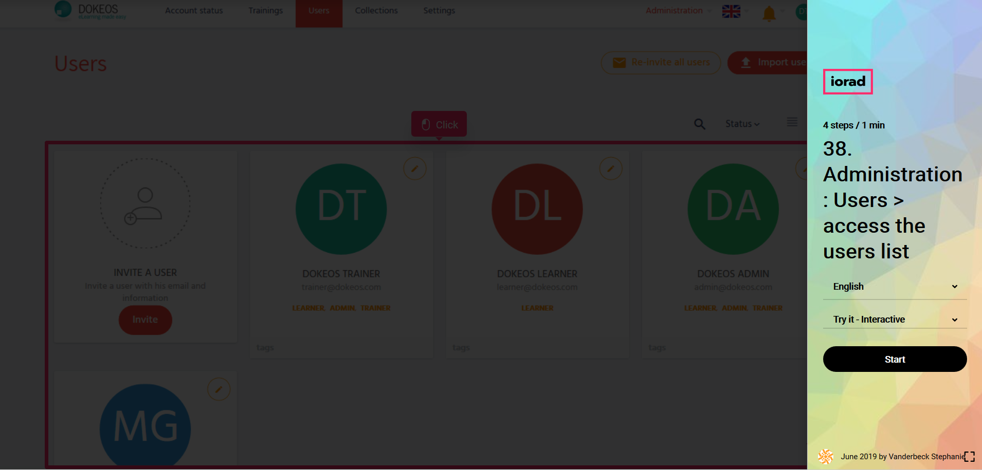In the tutorial below you will learn to access the users list of your portal with Dokeos LMS (creator of e-learning solutions that supports companies, training providers and multinationals in their online training projects)