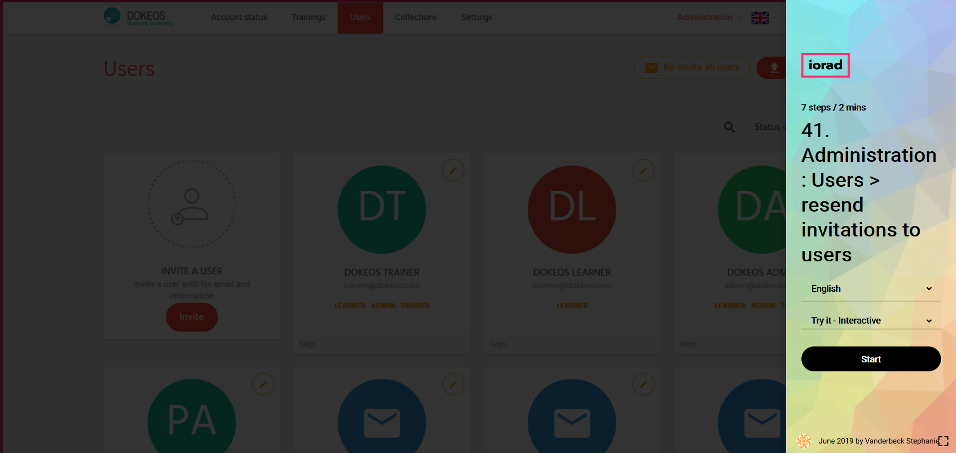 In the tutorial below you will learn to resend invitations to the users with Dokeos LMS (creator of e-learning solutions that supports companies, training providers and multinationals in their online training projects)