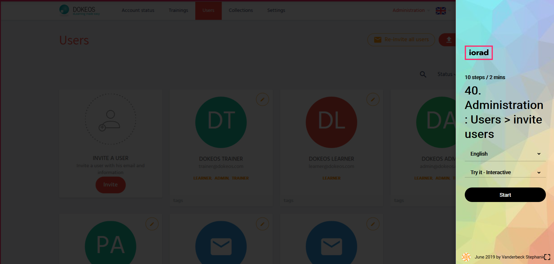 In the tutorial below you will learn to invite users to your portal with Dokeos LMS (creator of e-learning solutions that supports companies, training providers and multinationals in their online training projects)