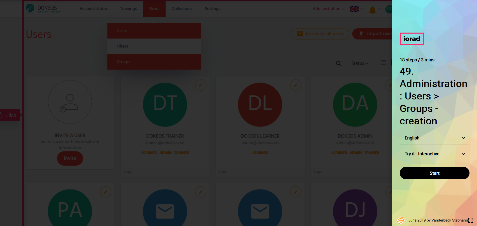 In the tutorial below you will learn to create user groups with Dokeos LMS (creator of e-learning solutions that supports companies, training providers and multinationals in their online training projects)