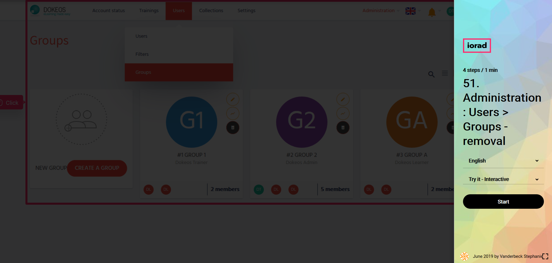 In the tutorial below you will learn to remove groups of your portal with Dokeos LMS (creator of e-learning solutions that supports companies, training providers and multinationals in their online training projects)