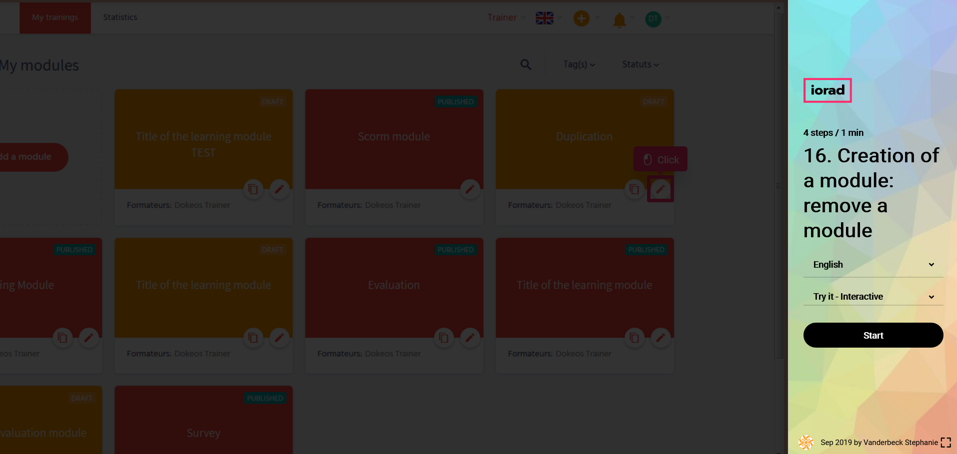 In the tutorial below you will learn to remove a module with Dokeos LMS (creator of e-learning solutions that supports companies, training providers and multinationals in their online training projects)