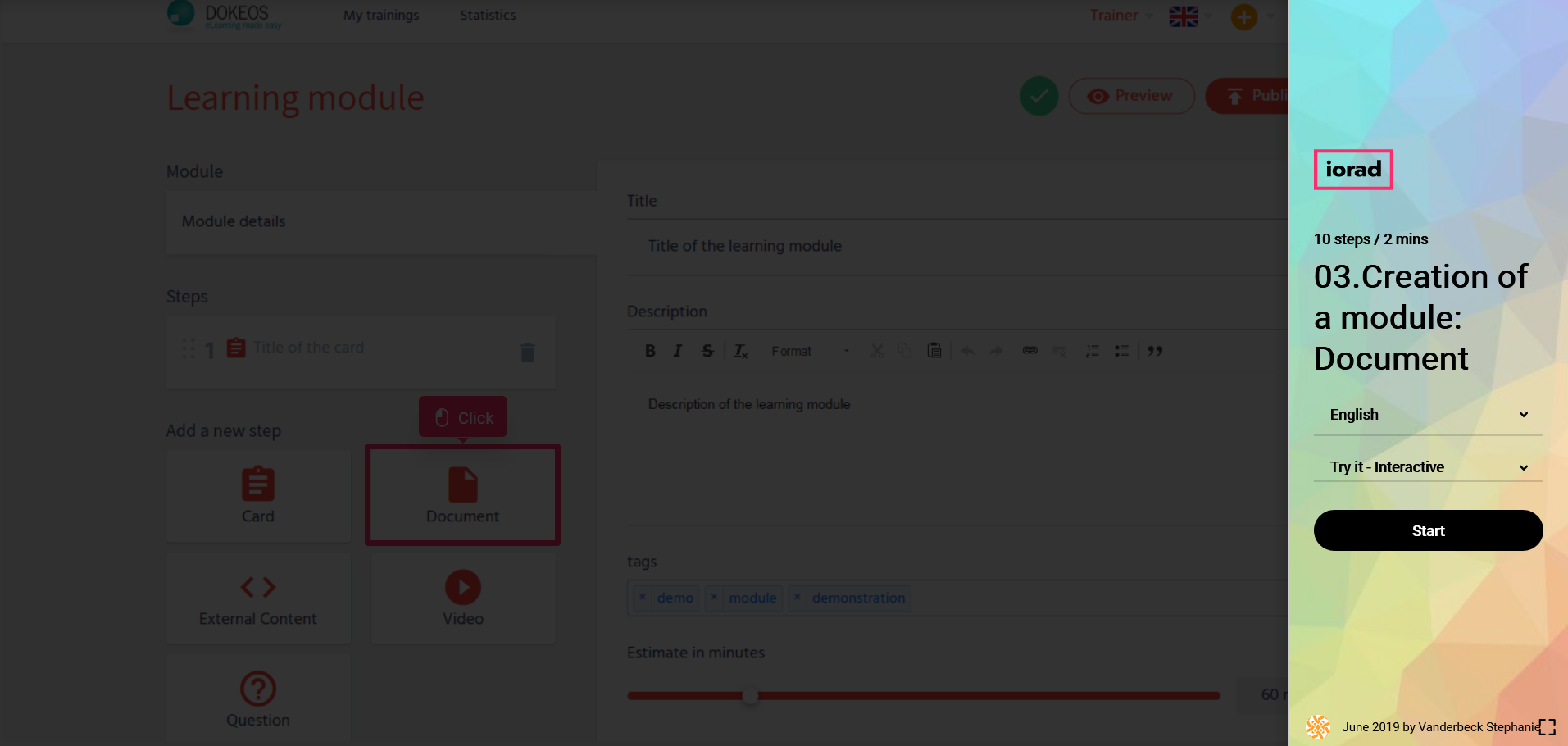 In the tutorial below you will learn to import documents in your learning module with Dokeos LMS (creator of e-learning solutions that supports companies, training providers and multinationals in their online training projects)
