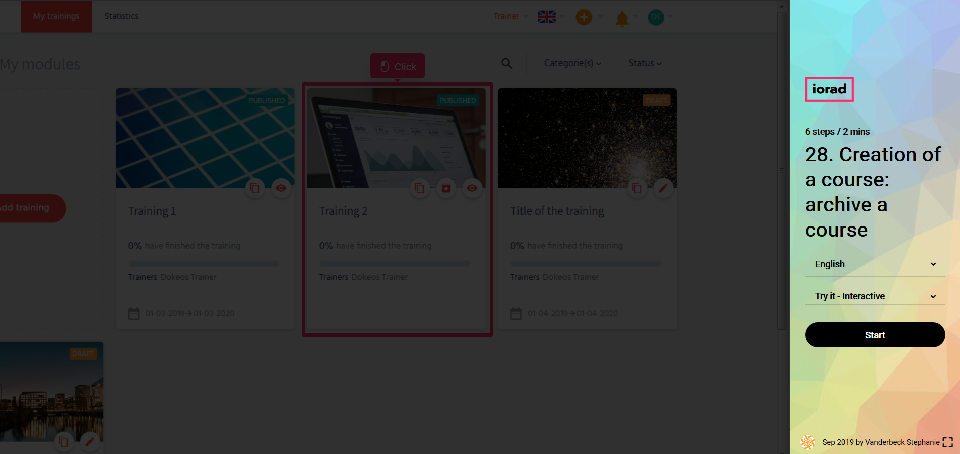 In the tutorial below you will learn to archive a published course without start nor end date or where the end date has already passed on Dokeos LMS (creator of e-learning solutions that supports companies, training providers and multinationals in their online training projects)