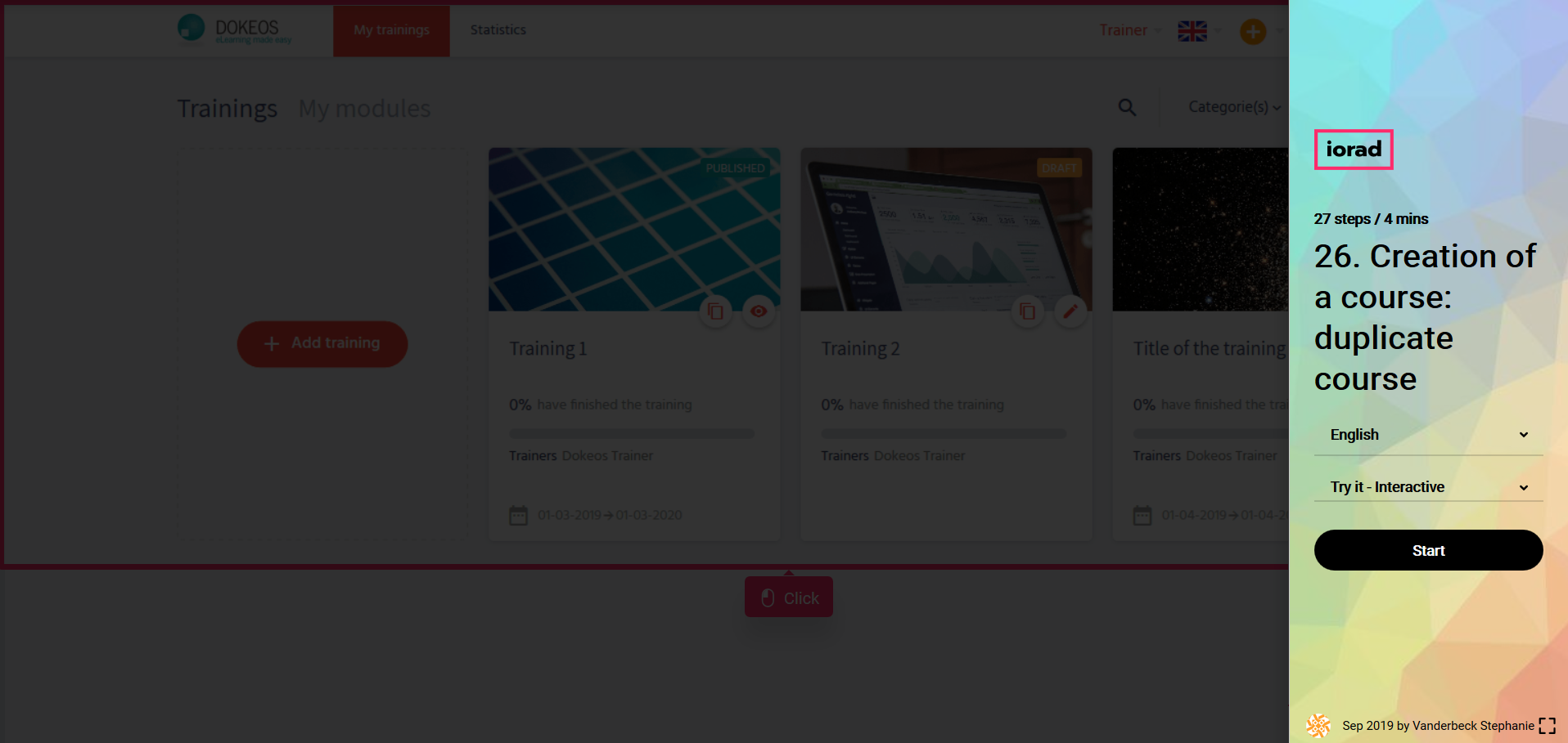 In the tutorial below you will learn to duplicate a course on Dokeos LMS (creator of e-learning solutions that supports companies, training providers and multinationals in their online training projects)