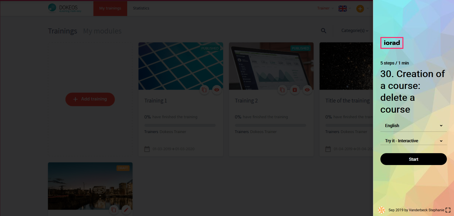 In the tutorial below you will learn to delete a course in draft status with Dokeos LMS (creator of e-learning solutions that supports companies, training providers and multinationals in their online training projects)
