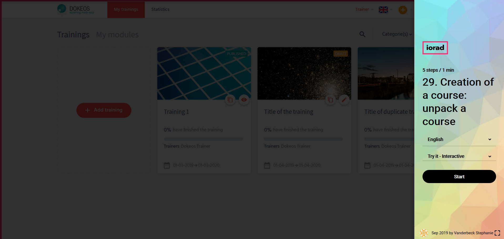 Creation of a course: unpack a course