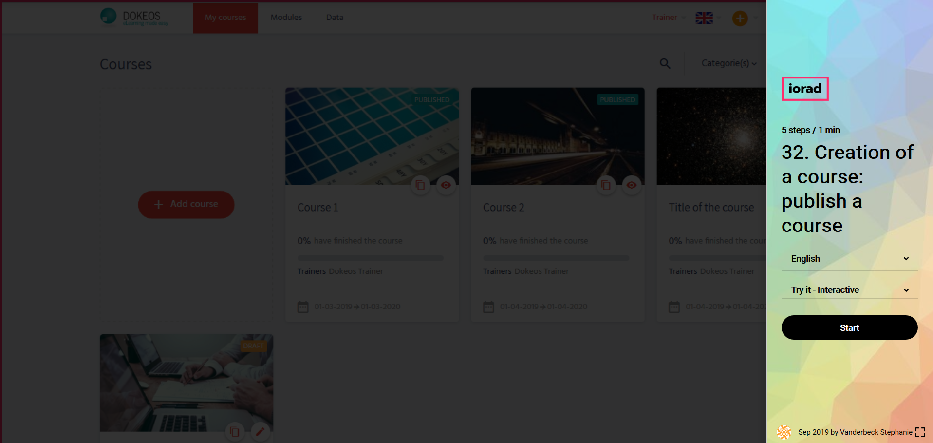 In the tutorial below you will learn to publish a course with Dokeos LMS (creator of e-learning solutions that supports companies, training providers and multinationals in their online training projects)