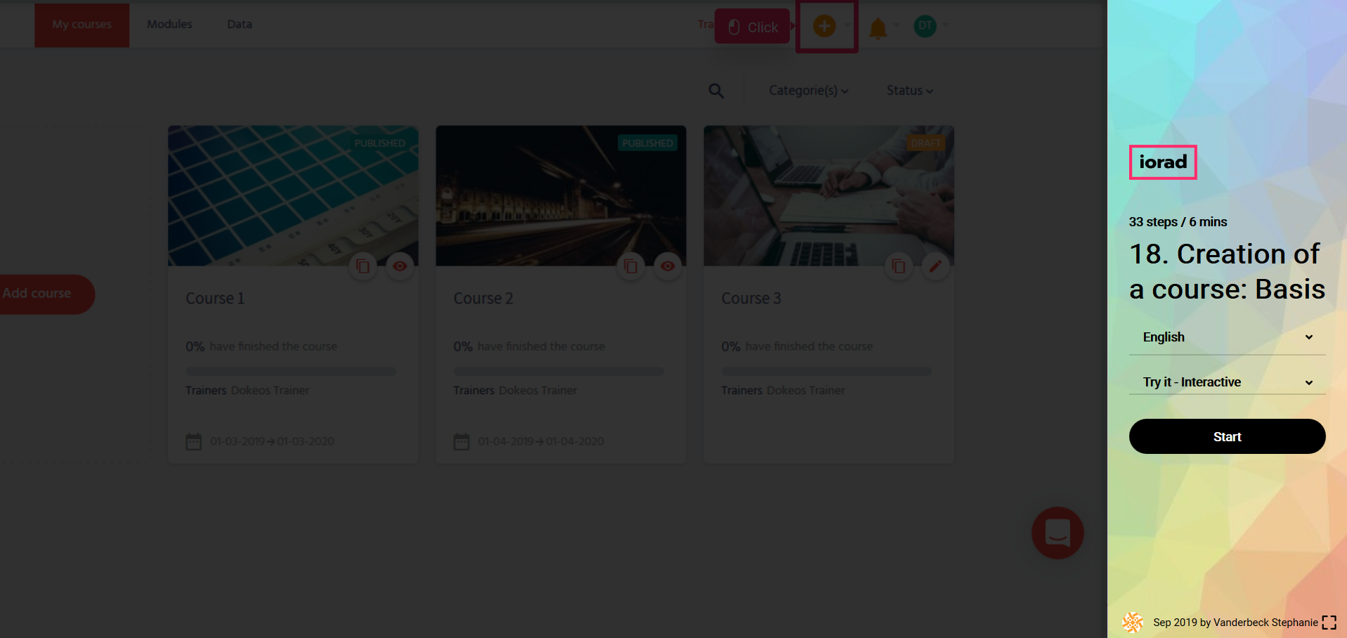 In the tutorials below you will learn how to create a course from A to Z with Dokeos LMS (creator of e-learning solutions who helps companies, training operators, and multinationals with their online training projects)