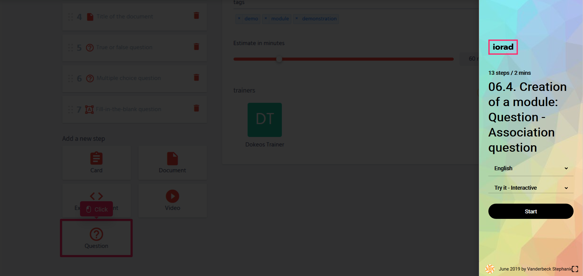 Creation of a module: Association questions (learning module)