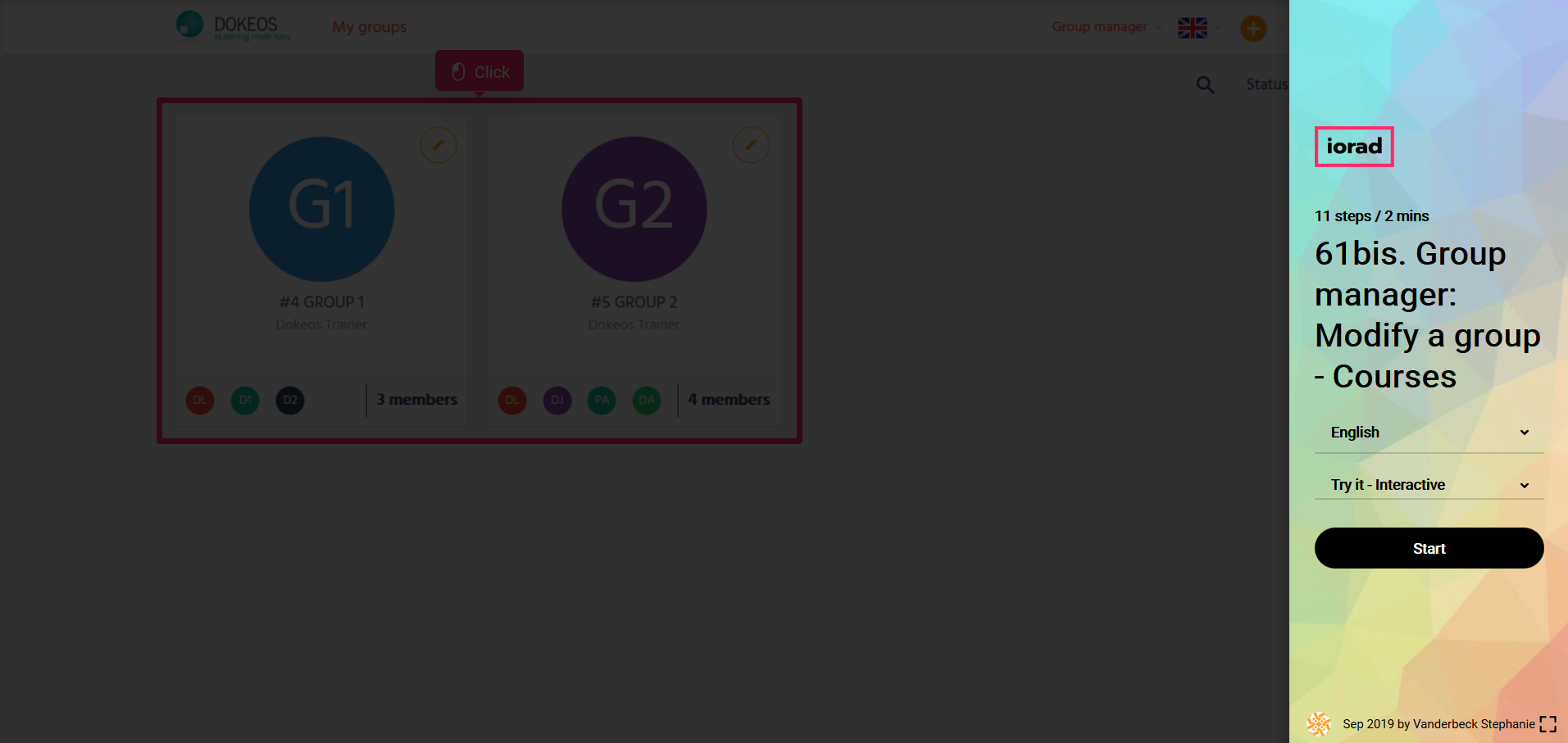 In the tutorial below reserved to the Group managers, you will learn to modify one of your groups in order to add this group or some of its members to one or more courses with Dokeos LMS (creator of e-learning solutions that supports companies, training providers and multinationals in their online training projects)