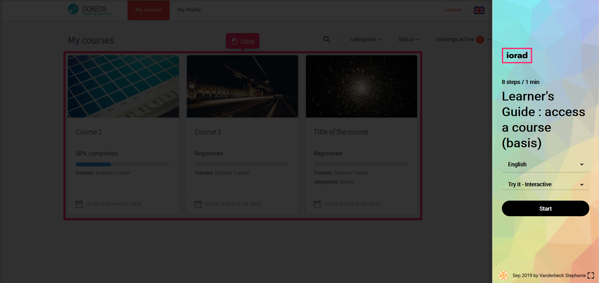In the tutorial below you will learn the bases to access a course on your portal with Dokeos LMS (creator of e-learning solutions who helps companies, training operators, and multinationals with their online training projects)