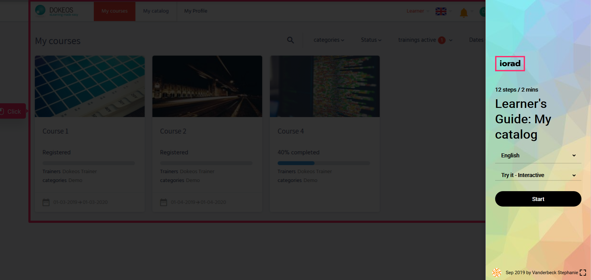 In the tutorial below you will learn how to access your catalog in your portal with Dokeos LMS (creator of e-learning solutions who helps companies, training operators, and multinationals with their online training projects)