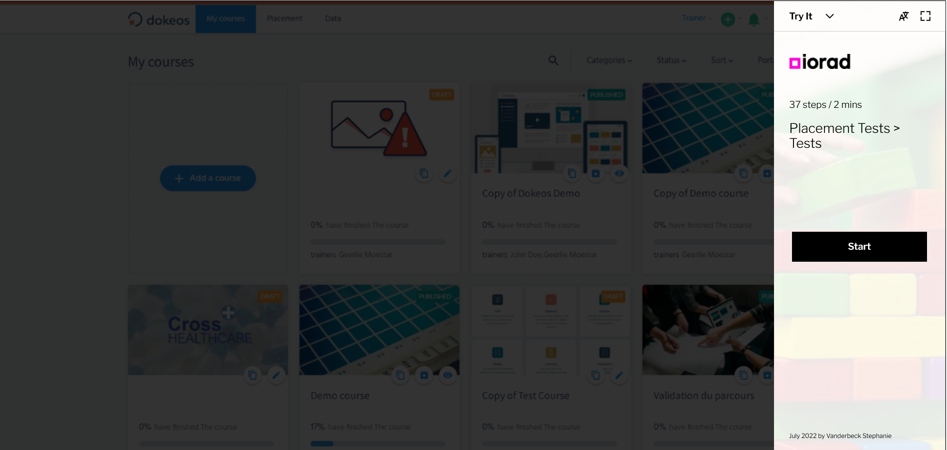 In the tutorial below, you will learn how to create placement tests on Dokeos LMS (creator of e-learning solutions that supports companies, training providers and multinationals in their online training projects)
