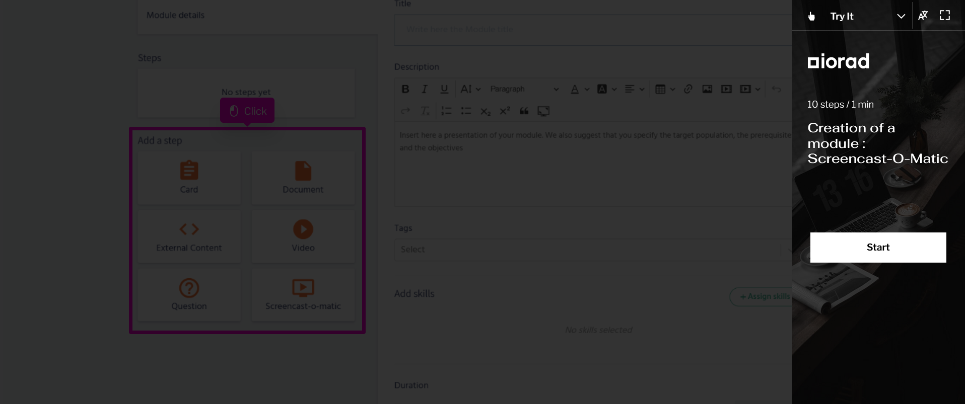 Creation of a module: Screencast-O-Matic