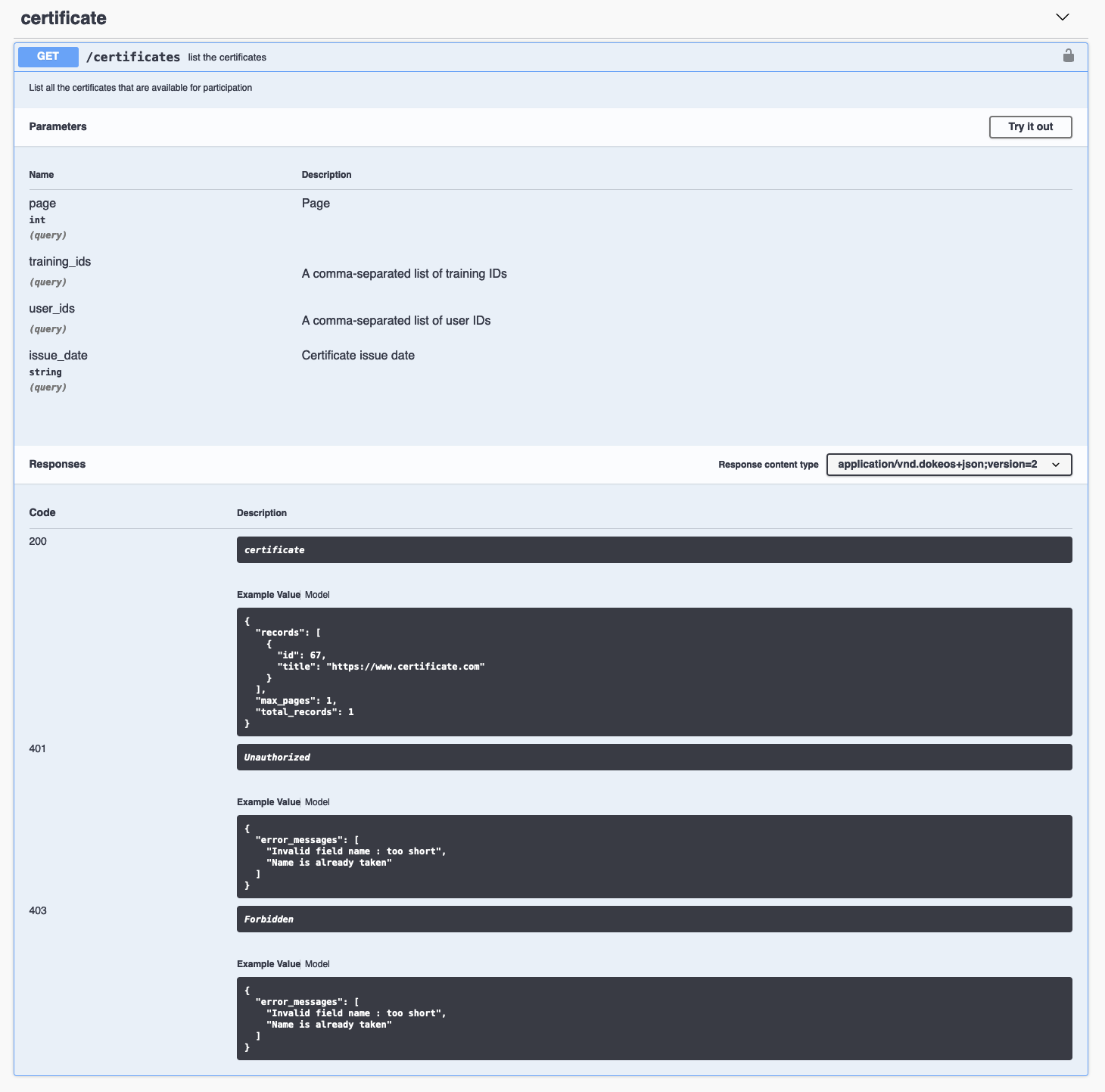 A new API call allows you to retrieve all your certificates in your integrated system. By filtering by date of issue, learner or training, you can refine your export.