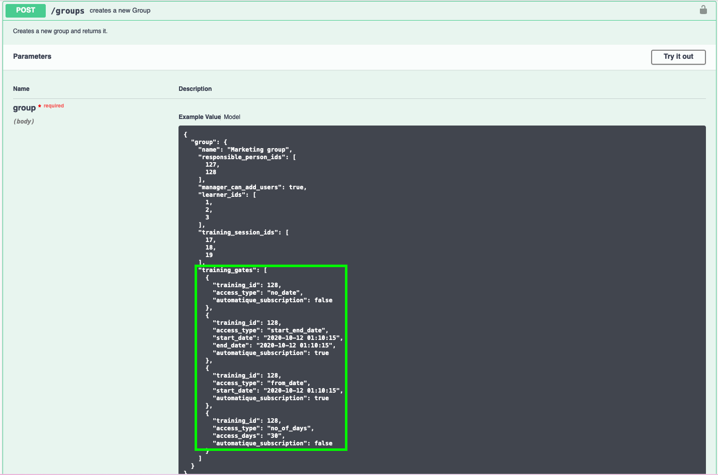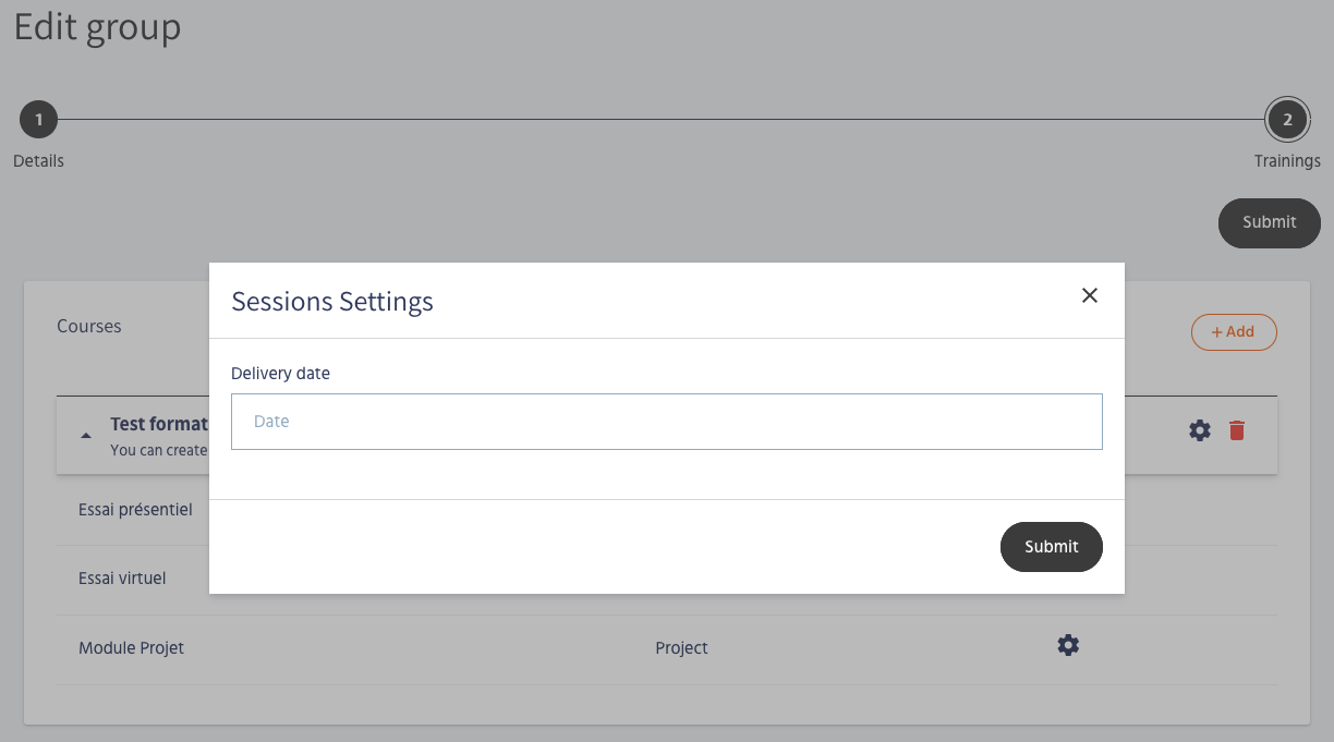Thanks to the Trainings sessions, you can now define a whole bunch of dates settings for a group, a session then.