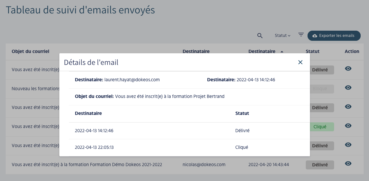 Heads up, we stored the datas of the emails sent from April the 13th 2022.